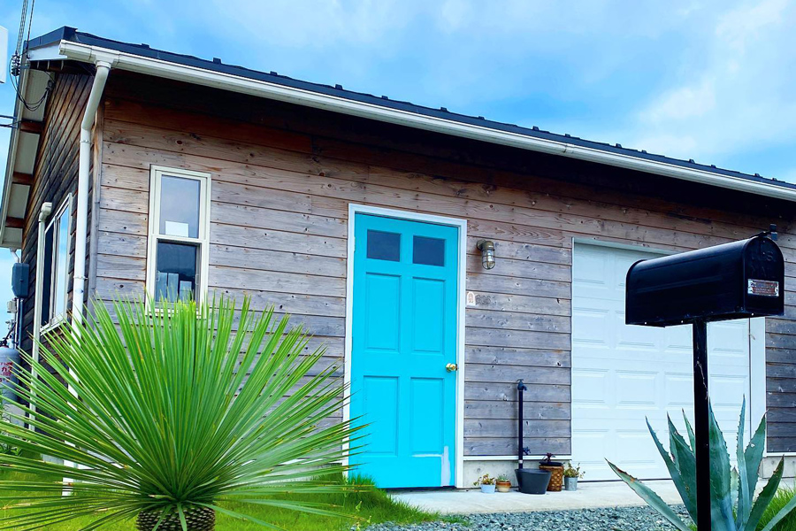 - 小浜マリーナさんを越えて藤田釣具店さんの手前を左折した2軒目の水色の扉のコテージです。